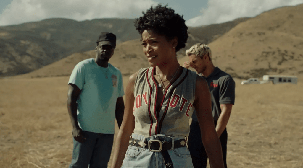 It has a fun, original script (Daniel Kaluuya and Keke Palmer play Hollywood horse wranglers, who try to film footage of a predatory UFO), and has some satisfying ending twists and spectacularly filmed sequences of suspense.